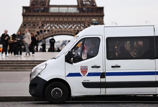 2024年3月25日,法国警察在巴黎特罗卡德罗广场巡逻警戒。新华社记者高静摄