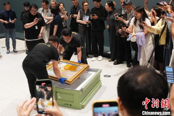 图为媒体现场见证米勒《拾穗者》开箱。中新社记者 张亨伟 摄