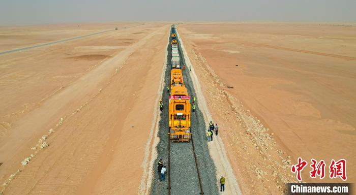 中新社北京7月8日电 (记者 刘文文)记者8日从中国铁建国际集团有限公司获悉,当地时间7月7日,中国铁建承建的阿尔及利亚西部铁路矿业线项目135公里优先段轨道铺通,标志着非洲首个沙漠重载铁路取得重大进展。