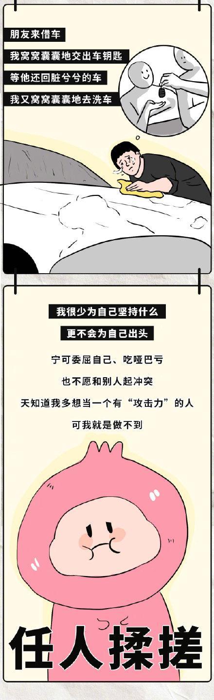 作为冲突回避型人格,我常常觉得自己很窝囊。比如,当网约车司机没话找话时,尽管我想安静地刷手机,却还是忍耐着回应;头发被Tony剪坏了,心里难受却照价结账;老同事把工作推给我,我不知道怎么拒绝,只能默默接受。我很难开口拒绝别人的要求,很少为自己出头,甚至朋友与陌生人吵架时,我也本能地想逃走。