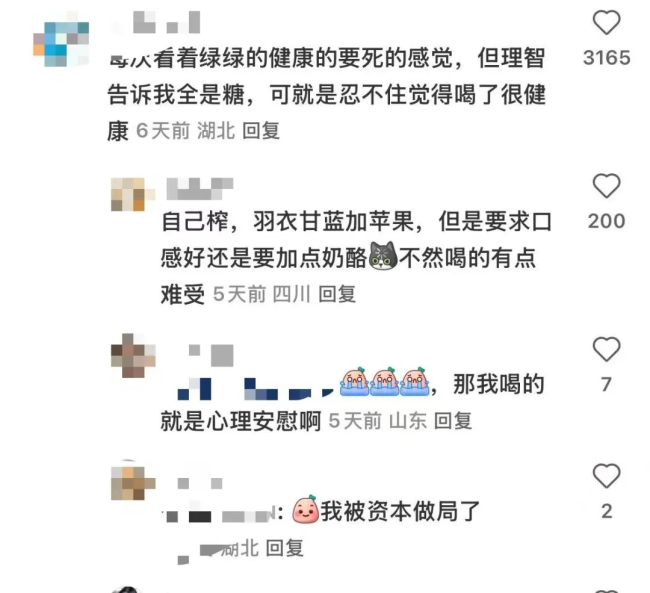对此,营养师、播客津津乐道的主播粒粒表示,100%甜味来自水果,和100%甜味来自添加糖没有任何区别,只不过消费者不是都明白“水果榨汁,会让天然糖变成添加糖”这个事实罢了。这类产品如果作为饮料,就是加了一点膳食纤维的含糖饮料,如果被拿来当代餐,就是加了少得可怜的膳食纤维的糖水,除了补充碳水之外,蛋白质和优质脂肪环节尽数缺失,堪称垃圾代餐。