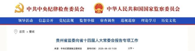 6月3日,中纪委转发贵州省纪委监委专项工作报告。