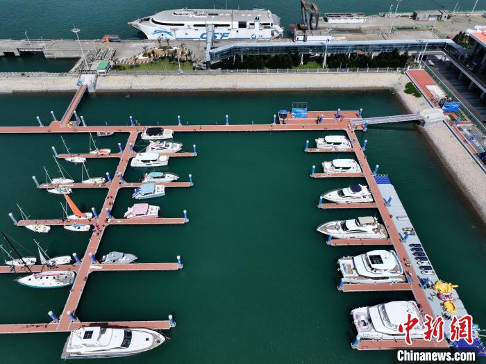 6月8日,2025平潭“海岛生活季”暨帆船运动周启动仪式在福建平潭22号国际游艇码头举行,开启了“码头生活”的多元图景。(无人机照片) 中新网记者 张斌 摄