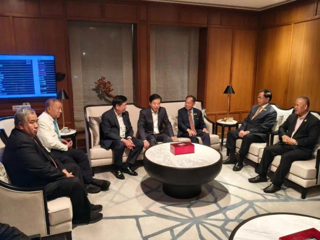 2025年6月10日夜,驻泰国大使韩志强偕夫人王欢离任回国。泰国外交部代表和友好人士前往机场送行。