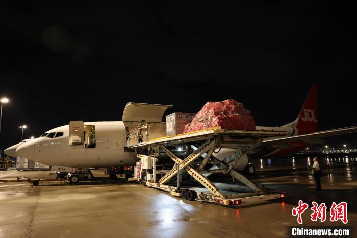 中新网深圳6月12日电 (索有为 王金锋 刘婕)6月11日凌晨时分,深圳机场国内货站一片繁忙——一箱箱荔枝沿着传输带通过安检,工作人员争分夺秒地组货打板,经过高效配载作业后,这批新鲜的岭南荔枝搭乘京东航空全货机启程前往武汉和西安。