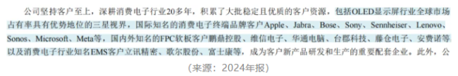 基于长期积累,公司客户资源较为丰富,直接客户包括三星视界、鹏鼎控股、安费诺、歌尔股份、立讯精密等消费电子零组件生产商,产品最终应用于苹果、华为、OPPO、Jabra、Sony、Facebook等终端品牌。