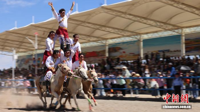 随着欢快的旋律响起,精彩纷呈的文艺表演让现场瞬间变成歌舞的海洋。充满激情的舞蹈,跳出了草原儿女的热情豪迈;嘹亮动人的歌声,唱出了广大农牧民对创造美好生活的坚定信心。马术表演环节更是将开幕式推向高潮,“单腿挂环”“马上叠罗汉”“跑马拾哈达”等精彩绝技让看台上的观众不约而同起身欢呼,掌声与骏马嘶鸣在草原上久久回荡。