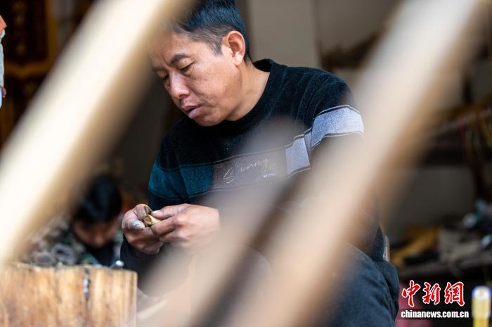 图为芦笙制作手艺人梁光林在给芦笙管簧片焊锡。吴德军 摄