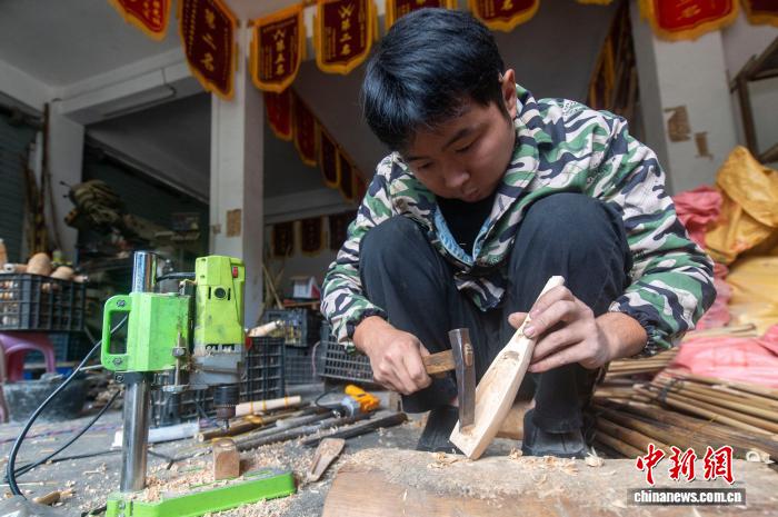 图为芦笙制作手艺人梁光林在制作芦笙管。吴德军 摄