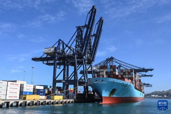 11月18日,在智利圣安东尼奥港,工人们正在进行装卸作业。新华社发(豪尔赫·比列加斯摄)