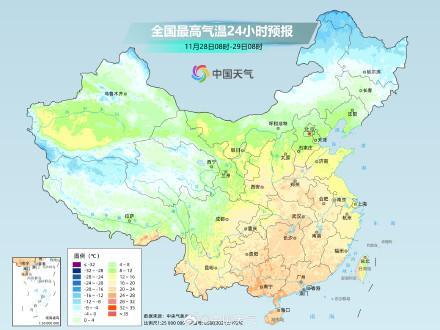 北方气温呈波动下行趋势,12月初多地气温可能刷新今年下半年以来的新低。相比之下,南方受冷空气的影响较小,未来几天最高气温仍处于偏高水平,但最低气温偏低,昼夜温差显著大于常年。