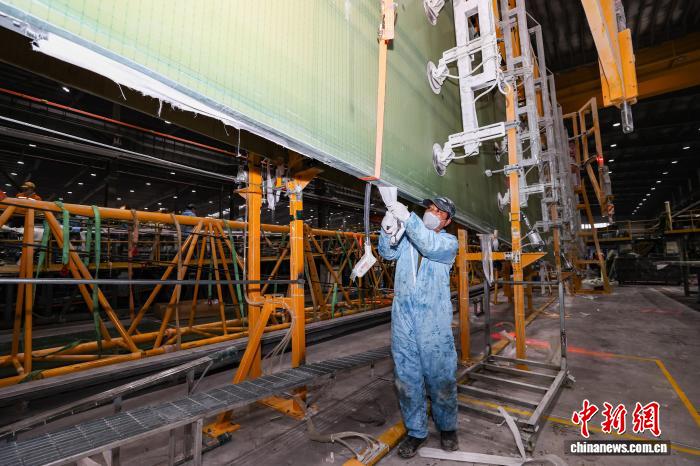 12月11日,工人在对风电叶片壳体进行真空灌注。记者 瞿宏伦 摄