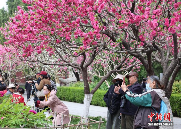 4月8日,山东泰安岱庙内繁花似锦,樱花、桃花、牡丹、芍药等次第绽放,与古建亭台相映成趣,吸引游人赏花踏青。当天,“镜头里的宝藏山东”旅拍采风团走进泰安,捕捉春日芳华。 赵晓 摄