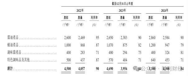 其中,2024年海天味业总产能达510万吨,较2022年增长13.3%,但同期产量仅增长6.2%,导致产能利用率从90%降至84%。各品类中,蚝油产品利用率下滑最为明显,两年间下降8个百分点,酱油和特色调味酱产品也出现不同程度的下滑。