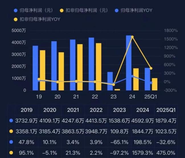 但怎么说呢,市值风云吾股大数据的两张图就能足以概括,2020年易明医药的收入是6个亿,2024年是6.5亿,2025年一季度下滑7.4%,作为利润的源泉,医药医药近年来收入基本原地踏步。