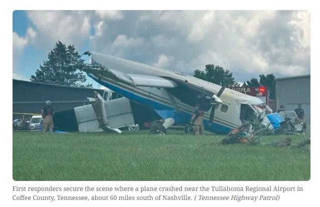 田纳西州公路巡逻队在社交媒体上发布的照片显示,失事飞机在坠机后机头着地,部分机翼缺失。