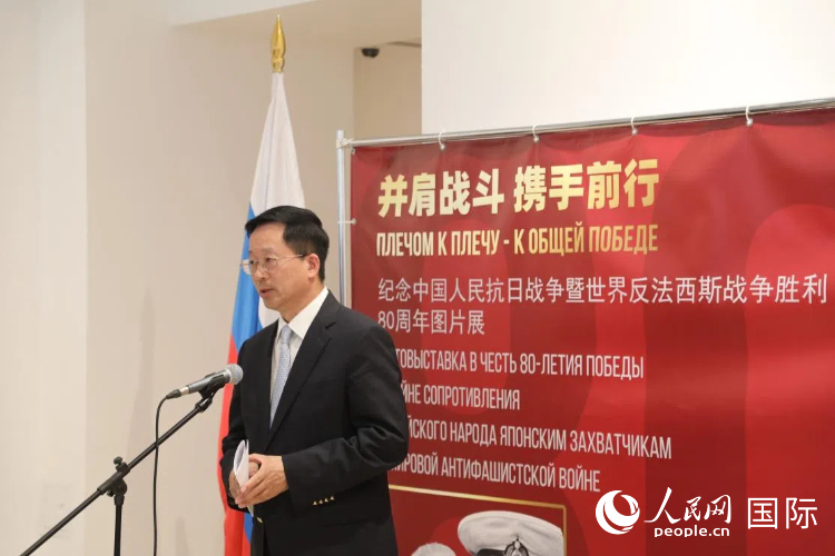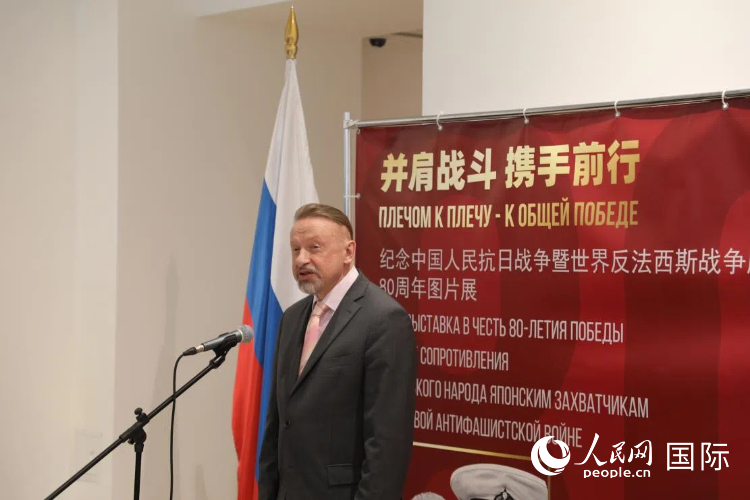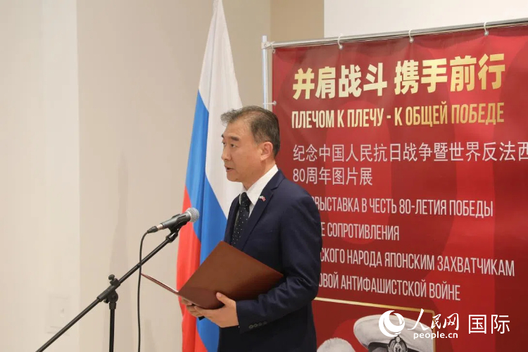 人民网莫斯科6月6日电 (记者肖新新)6月5日,“并肩战斗 携手前行”纪念中国人民抗日战争暨世界反法西斯战争胜利80周年图片展在莫斯科中国文化中心举行。近50位中俄两国政界、商界、学界及媒体界代表出席活动。