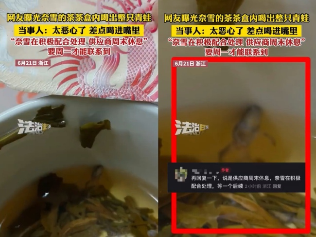 6月23日,就消费者喝出“青蛙”一事,奈雪的茶相关负责人称,已和消费者协商处理完毕。在业内人士看来,之所以茶叶中出现“青蛙”的情况,直接原因是奈雪的茶所用产品来自代工企业,更深层次的原因是供应链太“卷”所致。