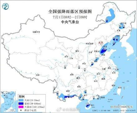 今天早上6时,中央气象台再次发布暴雨蓝色预警。预计从今日8时至明日8时,河北、天津、山东、河南、内蒙古、黑龙江、吉林、辽宁、云南、广西以及海南岛等地的部分地区将出现大到暴雨,其中山东北部和海南岛西部局地可能出现大暴雨。这些地区还可能伴有短时强降水,局部地区有雷暴大风等强对流天气。提醒大家注意安全。