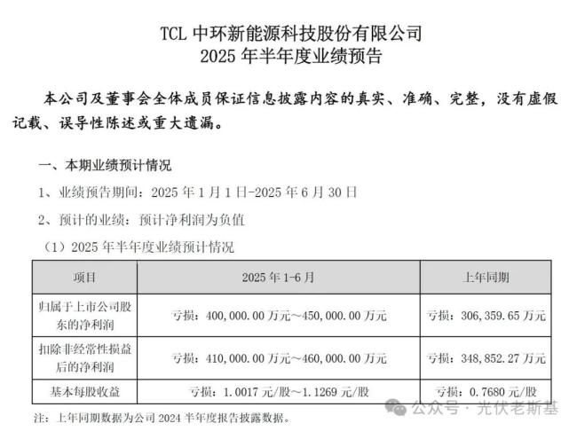 7月9日,TCL中环发布上半年业绩预告,归母净利润预亏40亿至45亿,较上年同期亏损扩大超30%。