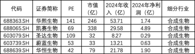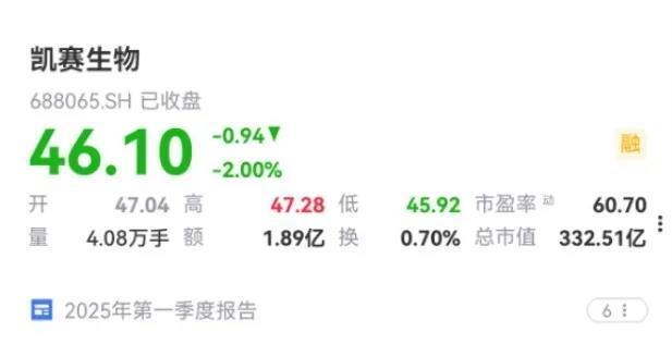 凯赛生物2024年净利润4.89亿,根据最近7月4日市值332亿,静态市盈率68倍。