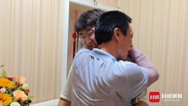 当天下午1点20分左右,一辆出租车停在冉光辉家楼下。看到儿子和女儿下车,他和妻子快步上前接过装满书本和衣物的行李。走进家门,冉光辉把鲜花递给儿子,并给了他一个紧紧的拥抱。“这是你人生中的一个转折点,结束了十几年的苦读,爸爸为你感到高兴。”说完,他张开双臂抱住儿子,喃喃道:“抱一下嘛,抱一下。”