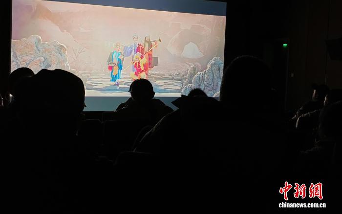 2025年12月21日,观众在浙江图书馆观看绍剧电影《孙悟空大战红孩儿》。(浙江图书馆供图)