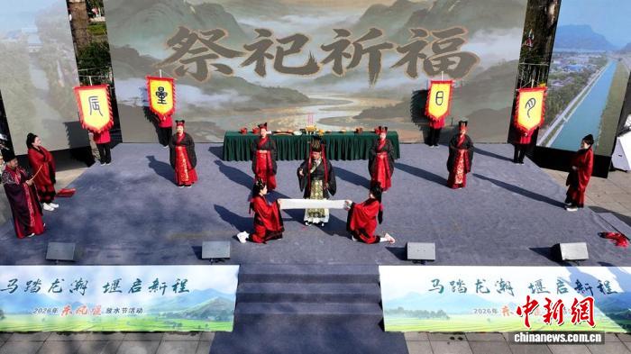 与此同时,现场还同步举行了2026年“世界水日”“中国水周”宣传活动启动仪式,青年志愿者代表向全社会发出节水护水倡议,呼吁公众共同守护水资源、传承水文化。期间,还集中展示了东风堰灌区2025年农业水权水价改革成果,签订了《东风堰灌区2026年农业节水增效战略合作框架协议》,并举行了庄重的传统祭水仪式,通过沉浸式展演再现古法祭水礼仪、回顾古堰历史,让民众深切感受东风堰治水文化的深厚底蕴。
