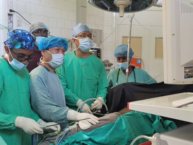 面对设备短缺、技术断层、观念保守等重重困难,队员们表示,一年内要让腹腔镜技术在这里落地生根。医疗队采取“三步走”战略:一是硬件升级,协调国内捐赠了穿刺器、钛夹、施夹钳、电凝钩、内镜下切割闭合器、腹腔镜专用双极电凝钳等腹腔镜器械,为腹腔镜手术的顺利开展提供必要条件;二是技术传帮带,通过“理论授课+模拟训练+术中指导”三维培训,为6名当地医生建立完整技术体系;三是临床破冰,选择胆囊切除、阑尾切除等基础术式突破,再逐步开展直肠癌根治、冗长结肠切除等复杂手术。