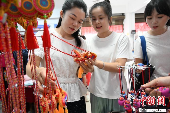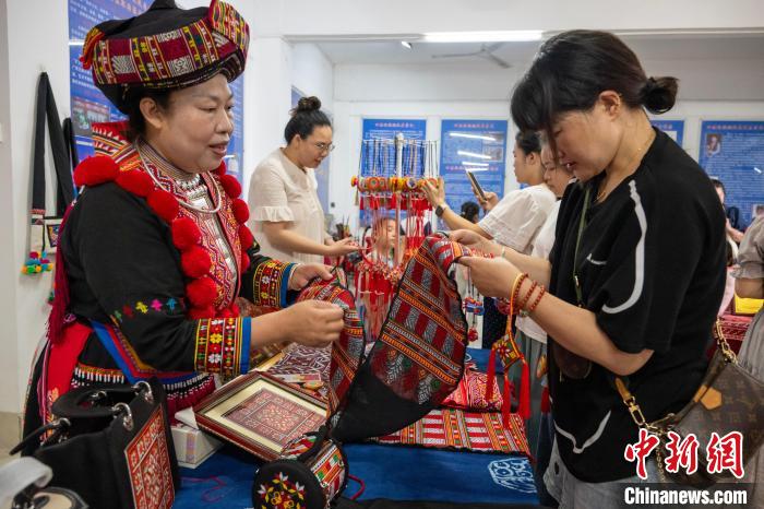 图为游客在咨询学习瑶绣技艺。黄数情 摄