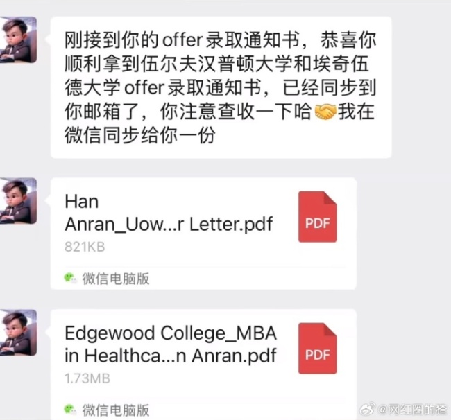 韩安冉晒硕士offer:终于圆了自己的大学梦了