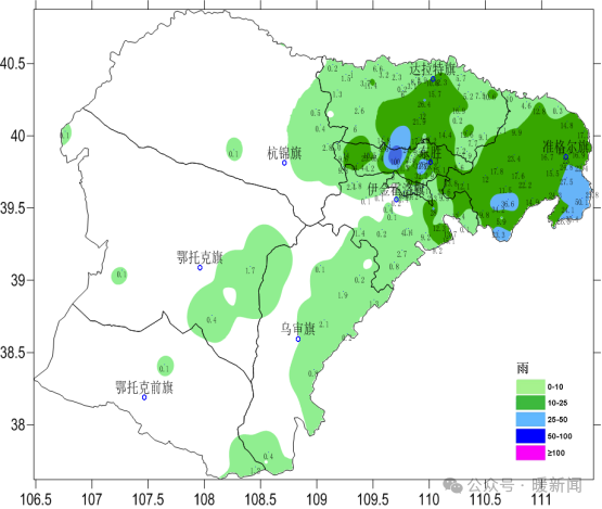 内蒙古暴雨红警:两地降雨超100毫米 局地强对流天气持续!7月9日20时,鄂尔多斯市气象台发布降雨实况信息。从当天8时至20时,该市东部地区出现小到中雨,局地出现大到暴雨,并伴有雷暴大风和短时强降水等强对流天气。最大降雨量和最大小时雨强均出现在东胜罕台镇九城宫(秦直道),分别为100.0毫米和80.1毫米。各旗区政府所在地的降雨量为:东胜区25.2毫米,准格尔旗薛家湾镇23.0毫米,达拉特旗树林召镇10.8毫米,康巴什区2.2毫米,伊金霍洛旗阿勒腾席热镇0.2毫米。