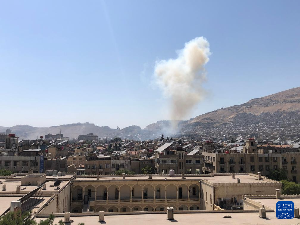 这是7月16日在叙利亚大马士革拍摄的以军袭击后升起的烟雾。
