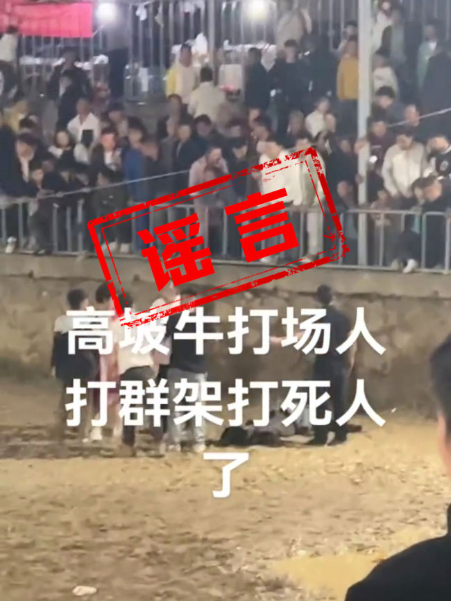 斗牛比赛现场致人死亡?不实 冲突导致伤者无生命危险!5月6日,有网民发布视频称,在贵州省贵阳市花溪区高坡乡举办的斗牛比赛中发生冲突,导致人员死亡,此事引起了广泛关注。5月7日,赛事主办方和当地政府回应称,现场确实发生了冲突,有人受伤倒地,但无生命危险,网传的死亡消息并不属实。