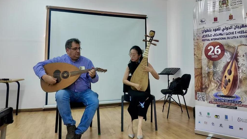 拉巴特中国文化中心还在得土安音乐舞蹈艺术学院举办了以《丝路两端的弦音交响——琵琶与乌德琴的千年对话》为题的“中国故事”讲座。两位琵琶演奏家结合现场演示,围绕中摩两国民族乐器的发展历程,深入浅出地讲述琵琶与乌德琴之间的文化渊源。摩著名音乐家、安达卢西亚音乐研究员阿明·查丘表示,中国琵琶演绎方式的多样性让人叹为观止。随后,查丘先生即兴与中方合奏一曲,为琵琶与乌德琴跨越千年的对话留下了最生动的当代注脚。
