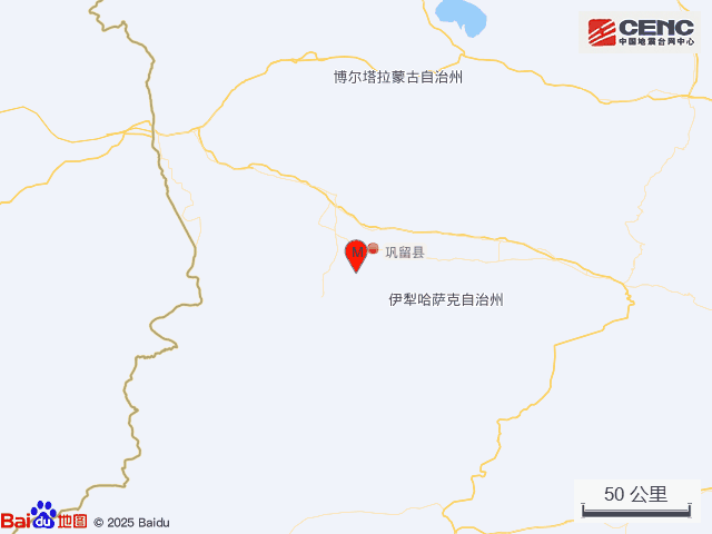 新疆伊犁州巩留县发生3.3级地震 震源深度20公里!据中国地震台网正式测定,6月11日12时10分在新疆伊犁州巩留县发生3.3级地震,震源深度20公里,震中位于北纬43.38度,东经82.09度。