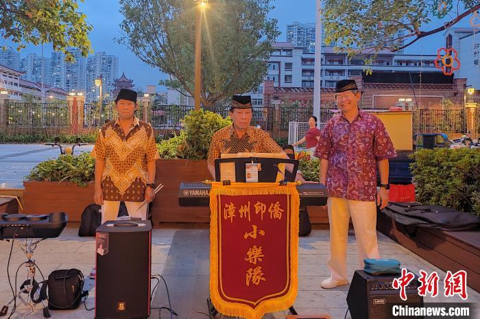 印尼语歌曲《哎哟,妈妈》《宝贝》《星星索》……有时也演奏闽南语歌曲《爱拼才会赢》《浪子的心情》《雨水我问你》……去年11月开始,乐队每周日晚在古城东广场公益演出两小时,南洋风情服装、异域旋律和曲风,吸引众多民众载歌载舞,成为古城一道靓丽的风景线。