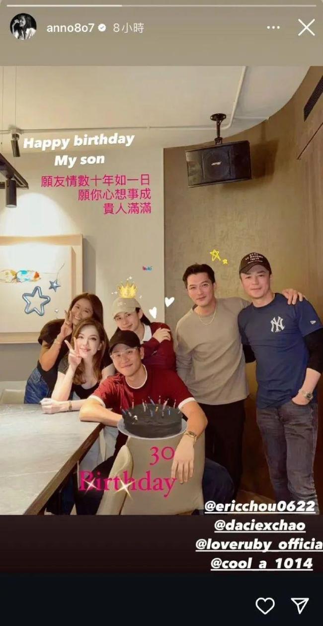 近日,林心如霍建华夫妇、许玮甯邱泽夫妇一同为周兴哲庆生,周兴哲的妻子也参加了聚会。从晒出的照片中可以看到,邱泽和霍建华关系非常好,两人搂肩合影。网友们纷纷表示,三对夫妇同框的画面非常养眼。