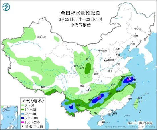 具体来看,今天江淮大部、江汉东部、江南北部和西部、西南地区东部和南部、广西中西部等地部分地区有大到暴雨,其中,安徽中南部、湖北东部、湖南西部等地部分地区有大暴雨,局地特大暴雨。6月22日,江苏南部、上海、浙江北部、安徽南部、江西北部、湖南中部、贵州东南部、广西北部、云南中南部等地的部分地区有大到暴雨,局地有大暴雨。