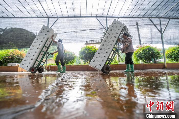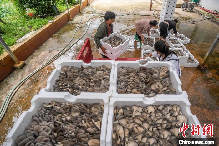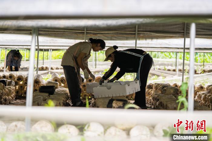 图为赫章县辅处乡兴旺村村民在搬运采收的菌菇。罗大富 摄
