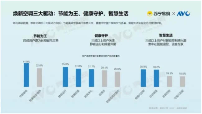 家电产业专家梁振鹏认为:“高能效比空调、带有健康功能的空调,这成为消费者购买空调的刚性需求。同时,智能化和场景化的空调,渗透的比较快。”调研数据也印证了以上的观点。