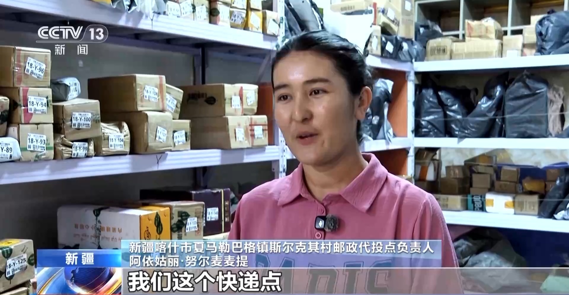 新疆喀什市夏马勒巴格镇斯尔克其村邮政代投点负责人 阿依姑丽·努尔麦麦提:包邮之后,我们这个快递点每天收到的快递比之前明显增多了,现在每天收到的快递超过700件。大件家电明显增多了,所以我们开辟了家电暂存区。