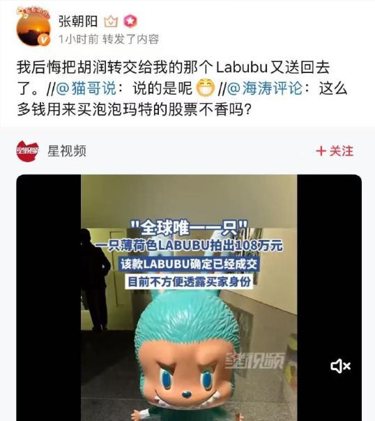 张朝阳后悔送回LABUBU 名人圈层流通价值凸显