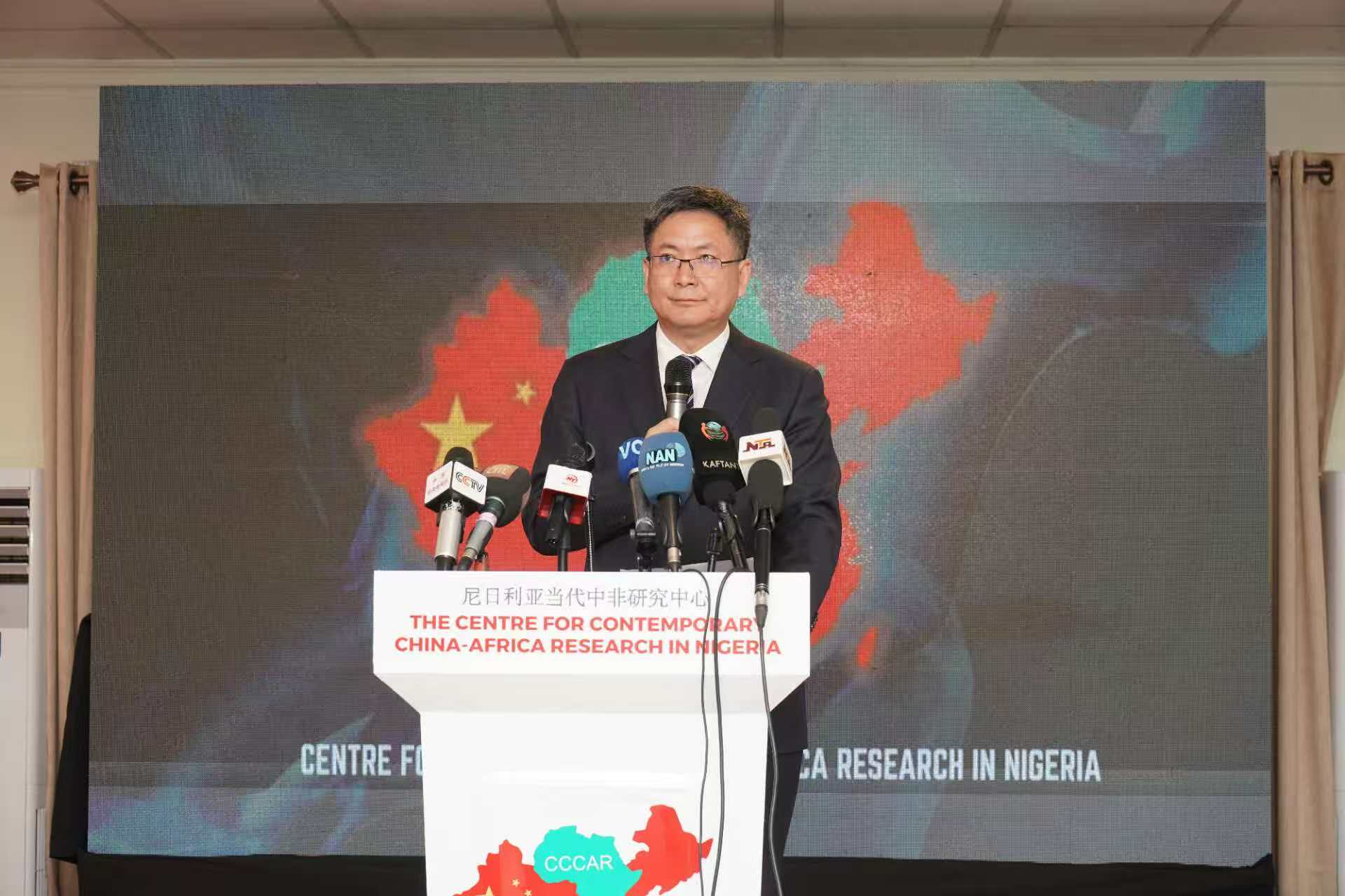 人民网阿布贾6月26日电(记者姜宣)26日,由尼日利亚当代中非研究中心举办的“携手推进中非现代化‘十大伙伴行动’,共建中非全天候命运共同体”主题研讨会在尼日利亚中国文化中心举办,正在尼访问的中共中央党校(国家行政学院)副校长龚维斌、中国驻尼日利亚大使于敦海,尼日利亚尼中全面战略伙伴关系总干事特格贝及多位州长和参议员代表出席。来自尼政府、智库、高校、媒体及西共体等各界人士约250人与会,中国和南非、摩洛哥、埃及、肯尼亚,塞内加尔、加纳等国20多位知名学者线上参会。