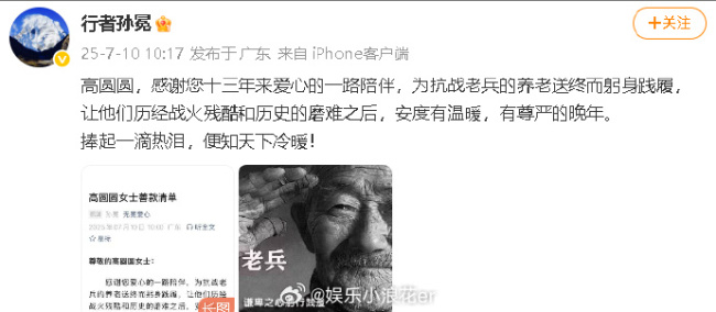 高圆圆为抗战老兵捐款13年,善款近50万,人美心善!