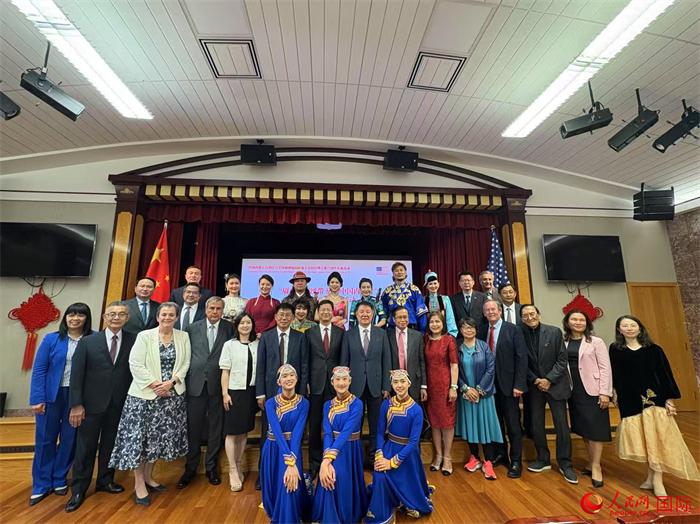 内蒙古代表团与现场嘉宾合影(第二排左七为中国驻旧金山总领事张建敏,左八为内蒙古自治区副主席奇巴图)。人民网记者 邓圩摄