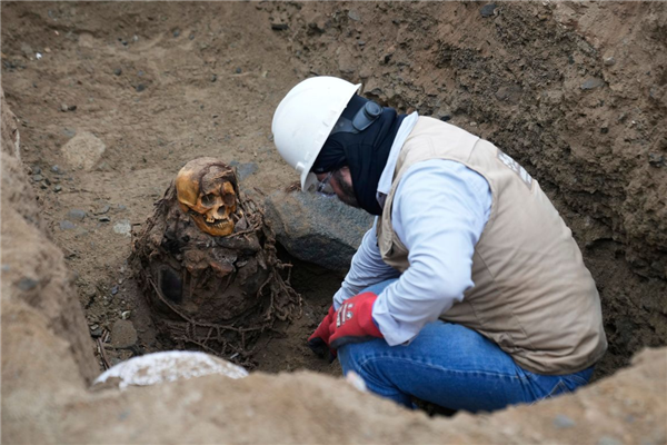 秘鲁首都出土一具千年木乃伊!近日,在秘鲁首都利马,一群天然气管道施工人员在距地表仅半米处挖掘出了一具木乃伊。经考证,这具木乃伊已有近千年历史,属于公元1000-1470年间昌凯文化的渔民社会。