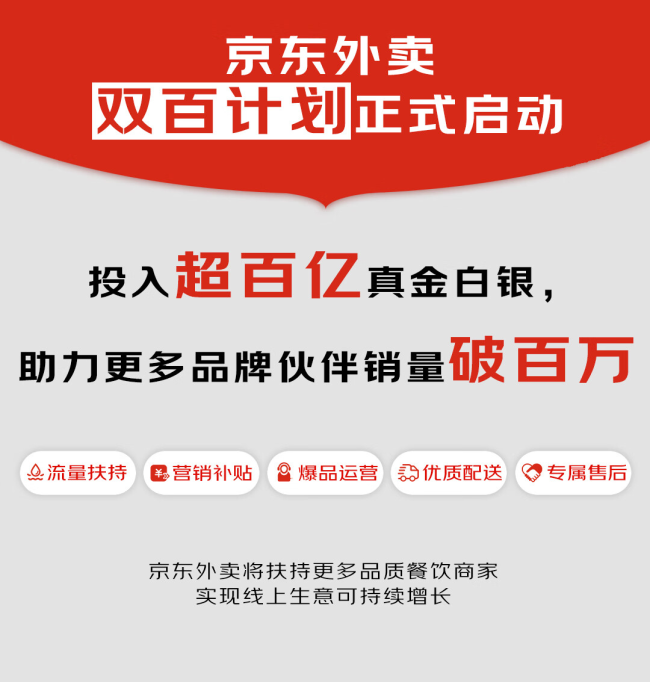 7月8日,京东外卖宣布正式启动“双百计划”,投入超百亿元真金白银,扶持更多品类标杆品牌销量破百万。平台将通过流量扶持、营销补贴、爆品运营、优质配送和专属售后的5A级商家服务体系,帮助更多品质餐饮商家实现线上生意可持续增长,共同为消费者提供品质外卖更好体验。