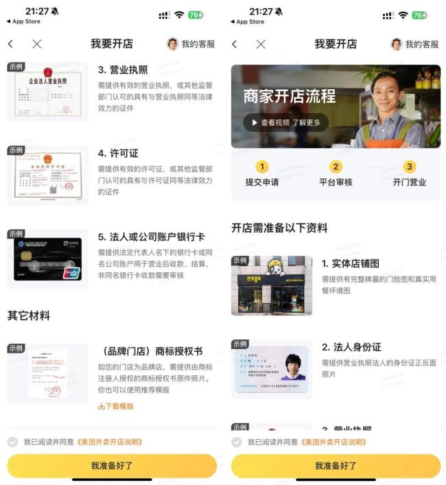 蓝鲸记者了解到,商家正常在外卖平台上开店需要经过严格的流程。