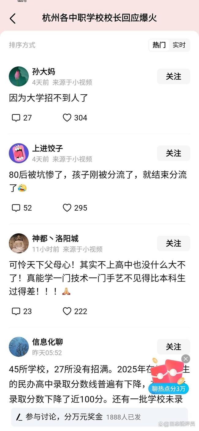 消息在网络上传播后,引发网友热议。有网友认为这是好事,职业教育应当被重视,掌握一门技术未来也有很好的出路。还有网友表示,这说明大家越来越理性,不再只盯着普高,适合孩子的才是最好的。许多人期待职业教育能继续发展,为孩子们提供更多优质的教育资源和就业机会。
